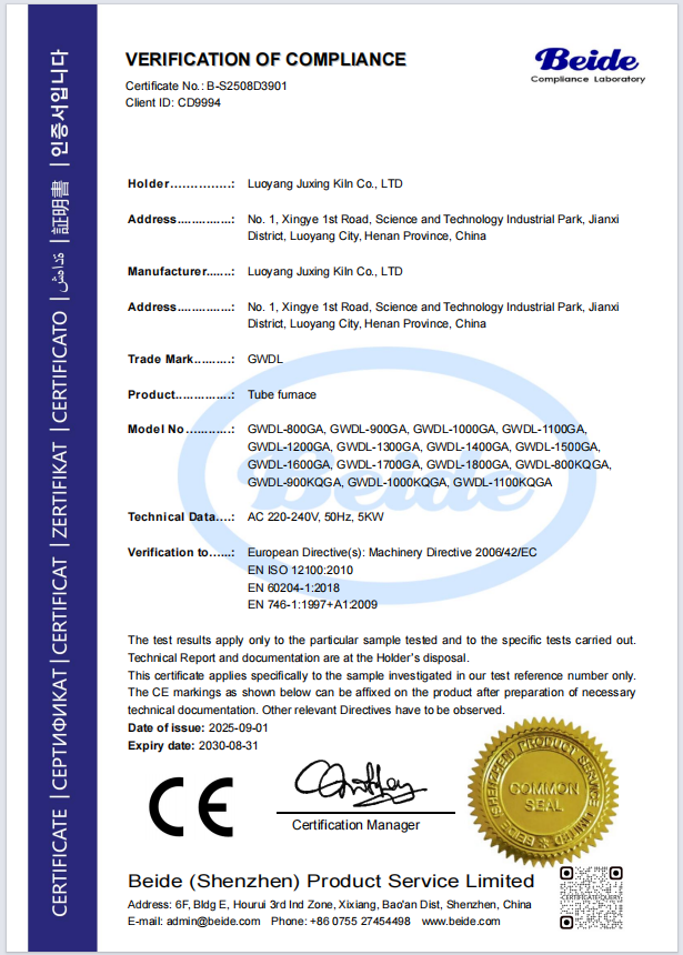 管式电炉CE认证证书