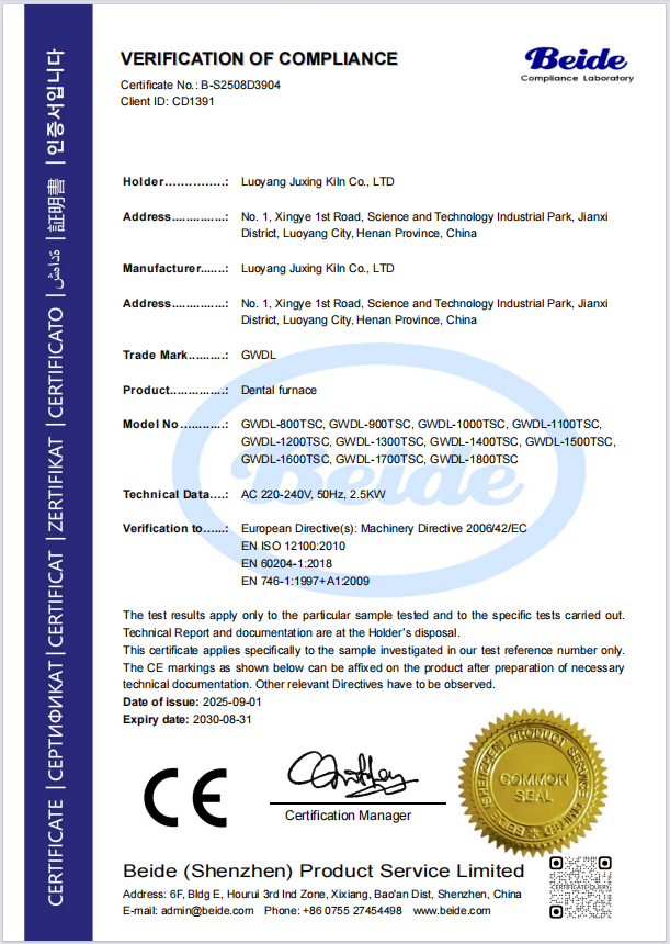 牙科炉CE认证证书