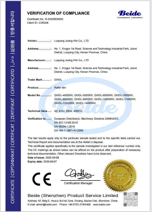 辊道窑CE认证证书
